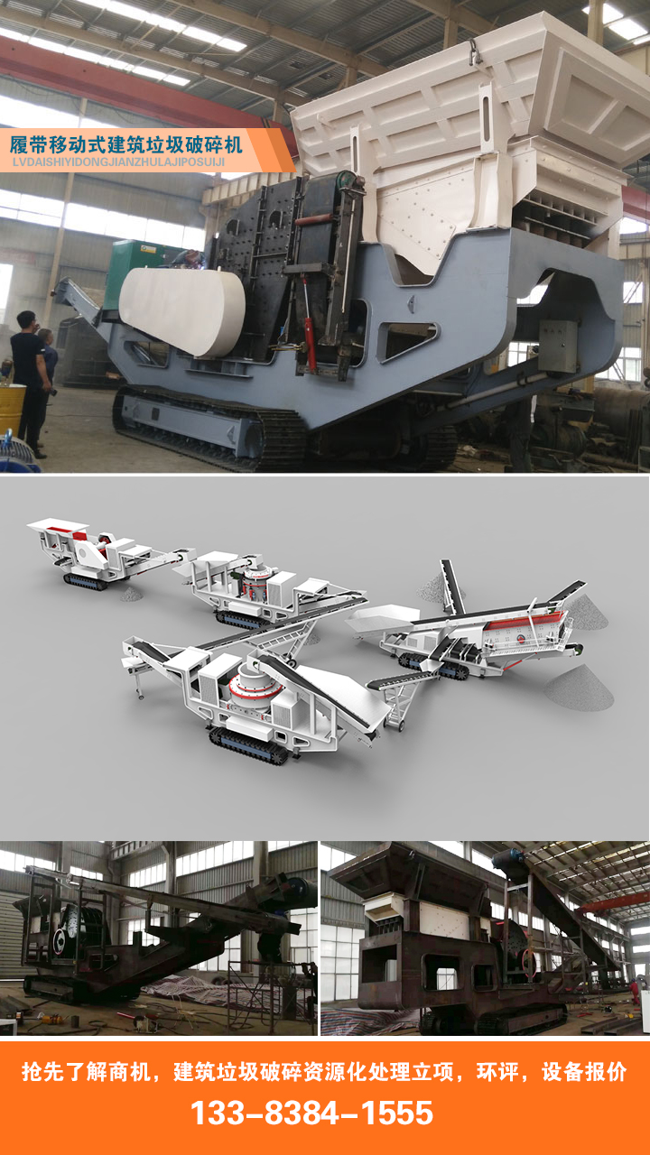 成套移动式建筑垃圾处理生产线时产250吨建筑垃圾再生料主要由锤式破碎机、振动给料机、振动筛、胶带输送机、几种电控等设备组成。主要移动破碎机主机设备主要有以下几种: