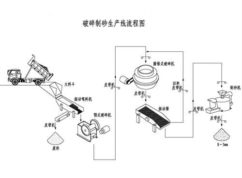 花岗岩破碎生产线配置方案简易流程图: